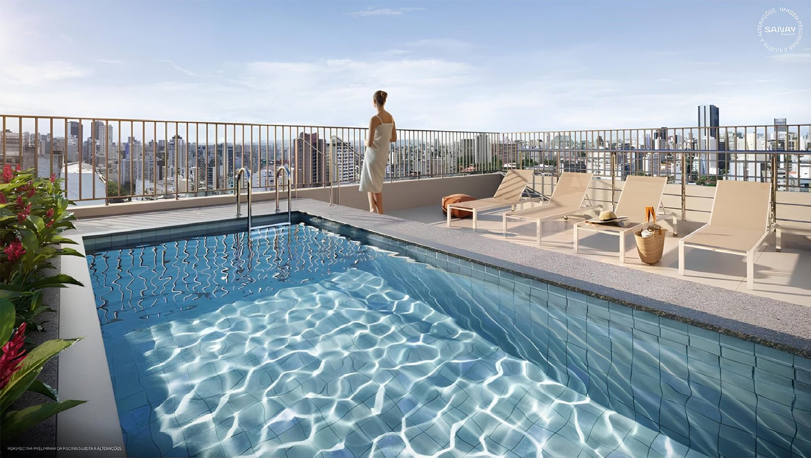 Do alto, a cidade vira cenário — viva momentos únicos no rooftop com piscina e vista para o Parque Augusta.